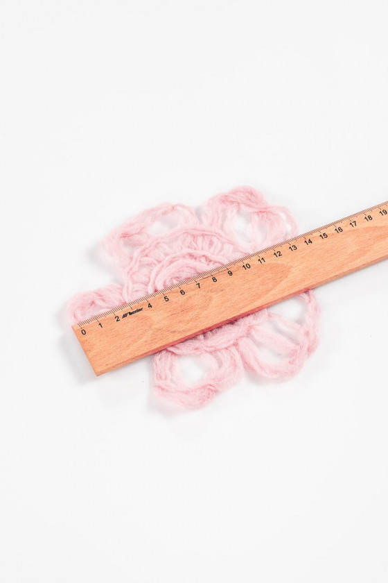 Italian application in the form of a flower of pink color, made of natural wool. Width: 15 cm.