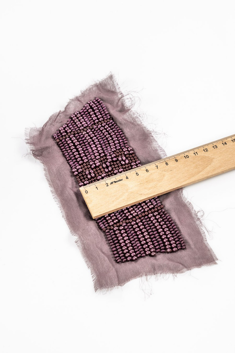 Beautiful Italian applice with beads see pede on silk zorże. Length 18 cm, width 6 cm.