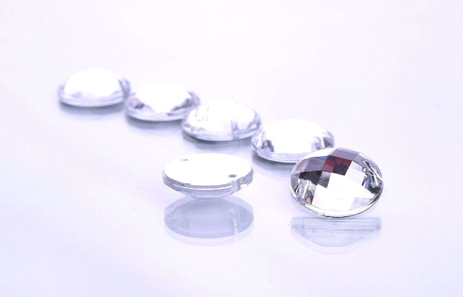 Round rhinestones for sewing imitating natural crystal. Size approx. 12 mm.