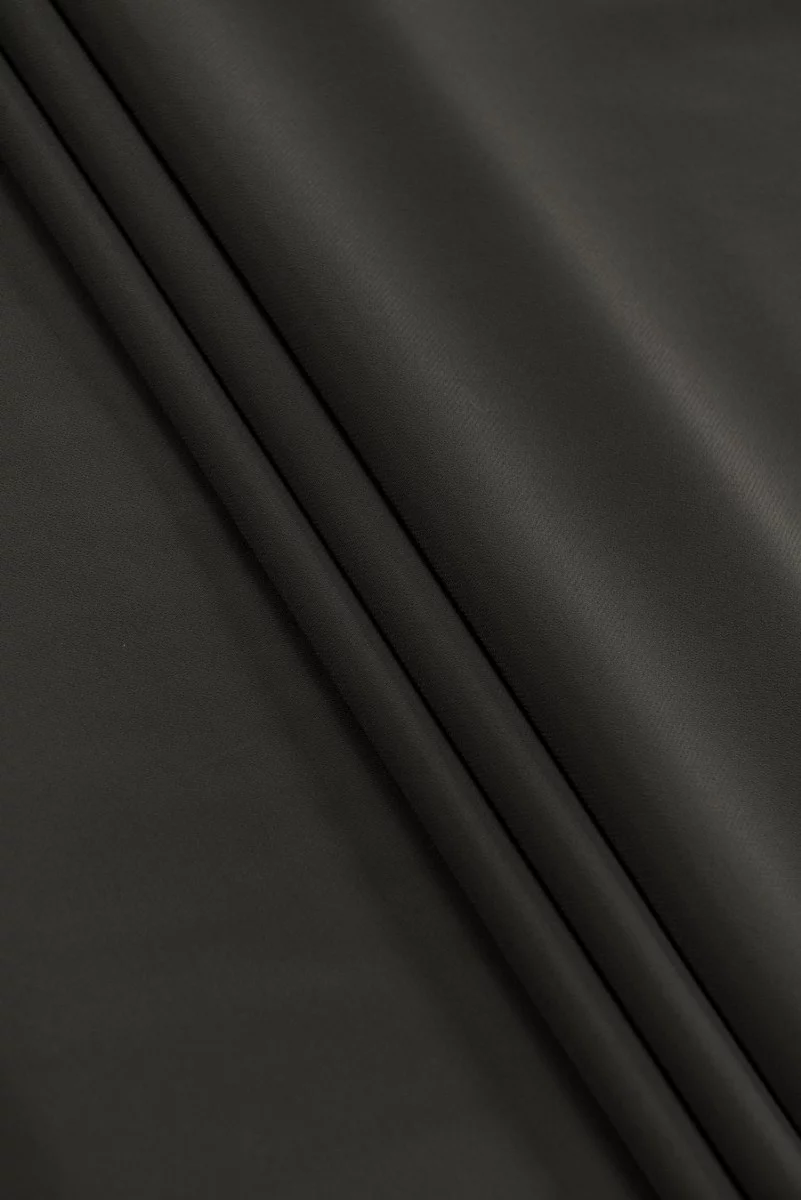 Italian dress fabric of the cadi type in dark ash color. The fabric is opaque, matte, fleshy, flowing (heavy). It can be used to sew dresses, blouses, skirts, thin jackets.