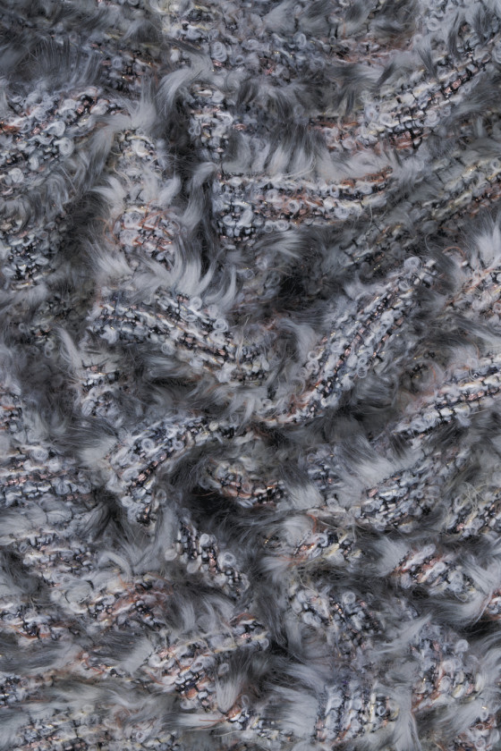 Exclusive, original chanel costume fabric in fashionable colors with woven faux fur ala rabbit. We recommend it for sewing jackets, vests, cardigans, ponchos or large scarves.
