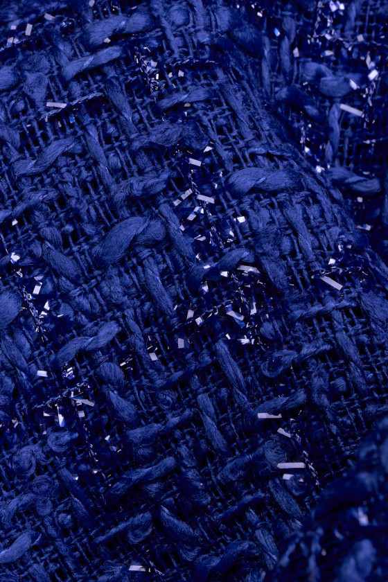 Italian chanel costume fabric in cornflower blue with lurex thread woven into it. Perfect for jacket + skirt or dresses. It can also be used to sew a thin, transitional coat.