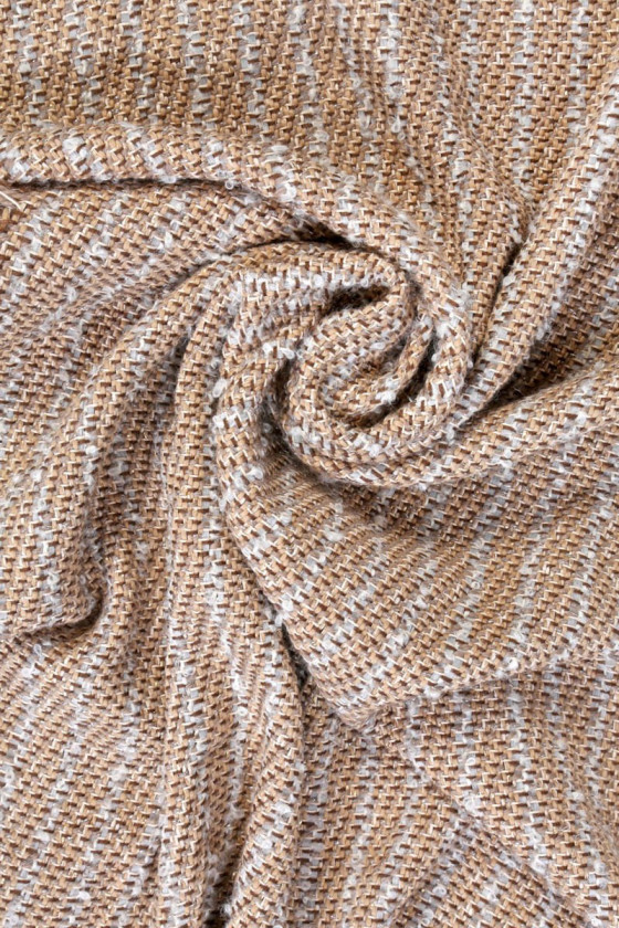 Original Chanel costume fabric interwoven with tulle and lurex thread. Thick fabric for costumes, thick sweaters (cardigan type) that can be fancifully finished with tassels. The fabric is woven with natural fibers - wool and silk, which will ensure comfort of wearing. We recommend matching it with a lining, which you can find in our store. The material is not elastic.