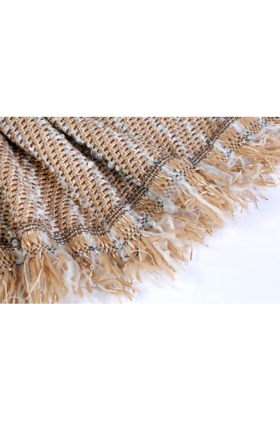 Original chanel costume fabric interspersed with tulle and lurex thread. Thick fabric intended for costumes, thick sweaters (cardigan type), which can be fancifully finished with tassels. In the composition of wool and silk !