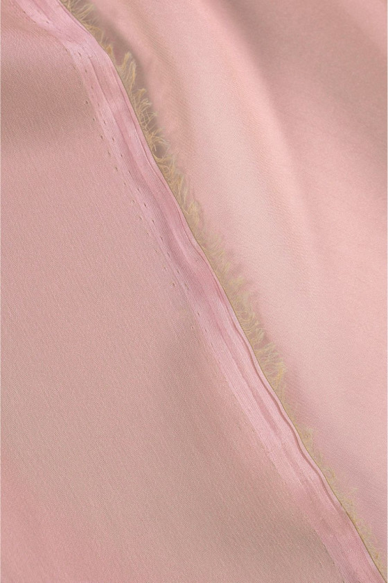 Italian chiffon polyester fabric with an interesting weave of two colors of threads - pink and dark beige, which create a two-tone effect. The fabric is very delicate, airy, transparent and non-elastic. Perfect for airy dresses, skirts and blouses, you can also sew a beautiful scarf from it.