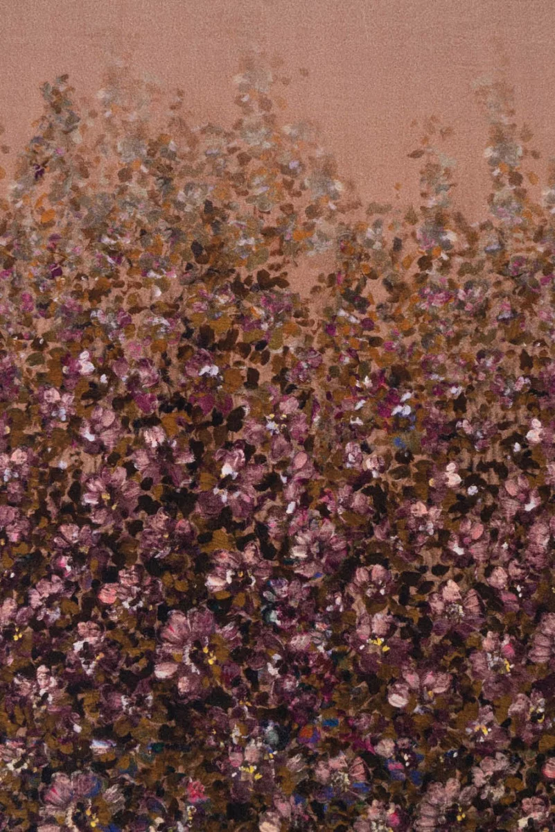 Italian costume fabric with flowers in shades of pink, purple and brown. Woven in 85% natural wool and 15% polyamide. We sew the fabric peripherally.