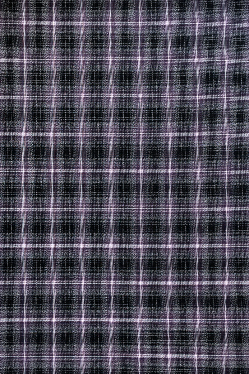 Italian costume fabric with a check motif (6 cm) in black, gray and purple. A soft fabric with a dense weave resembling wool. Perfect for sewing a suit, dress, trousers or skirt, jacket.