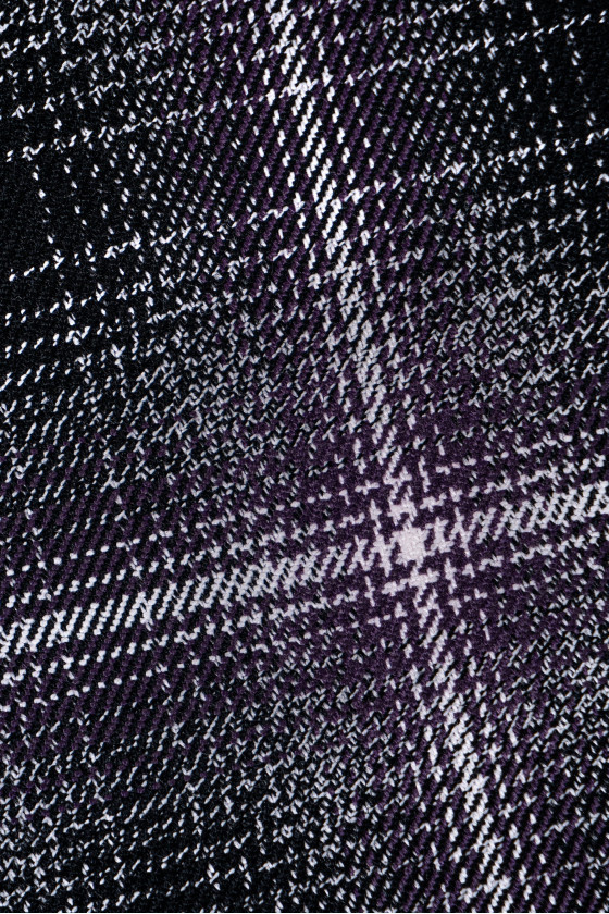 Italian costume fabric with a checkered motif (6 cm) in black, gray and purple colors. A mixture of viscose, polyester and elastane - weave resembles wool.