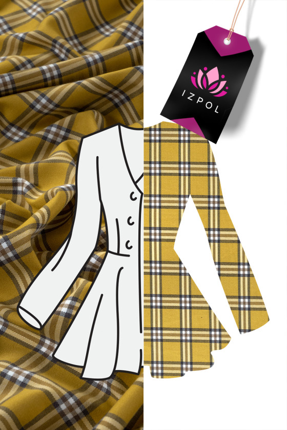 Italian costume fabric in beige-mustard color with a checkered motif of 2.5 - 3.5 cm. Fabric soft, fleshy, slightly elastic - ideal for sewing a suit, dress, skirt, trousers or costume.