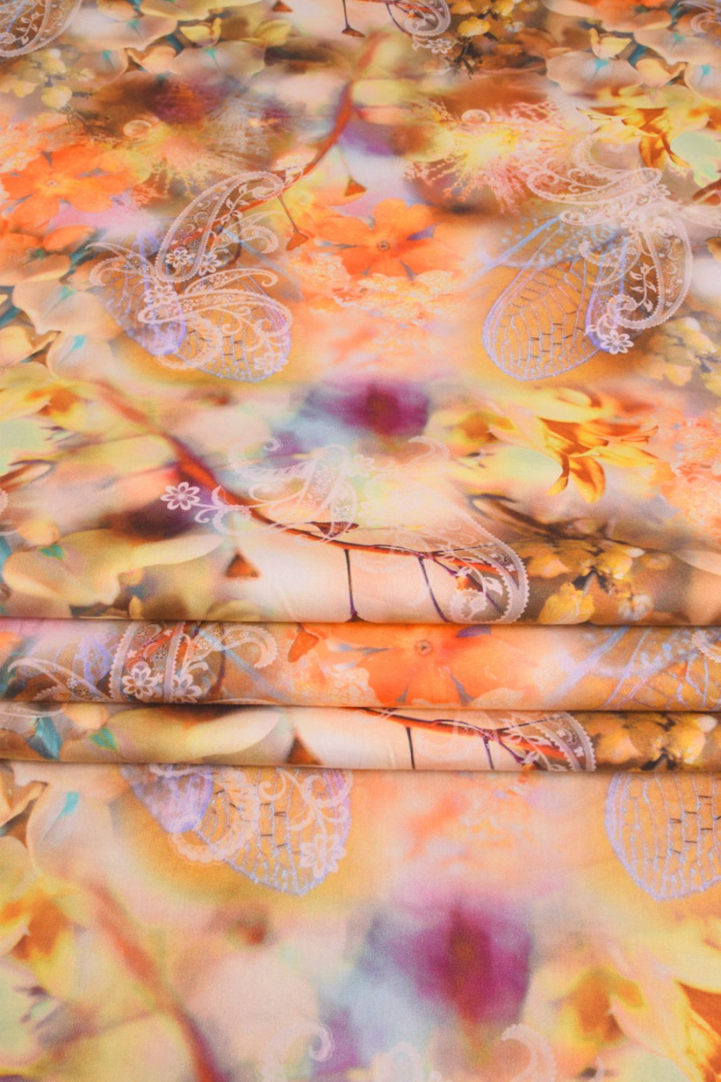 Italian cotton 100% natural in warm yellow-orange colors. Proposal for sewing summer dresses, skirts, trousers.