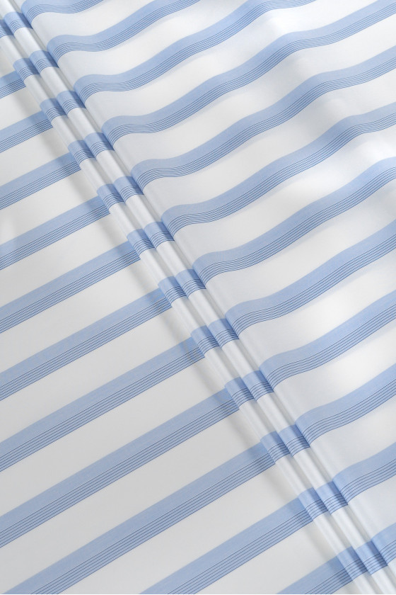 Italian cotton shirt in cream color with a motif of blue stripes, 2 cm wide. Non-elastic, slightly stiff fabric - perfect for sewing a shirt, blouse, dress.