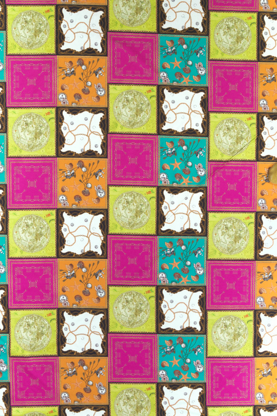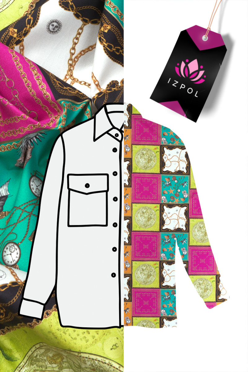 Italian shirt cotton, elastic with a motif of colorful squares 17 cm wide, which create a patchwork motif. The fabric is thin, elastic, opaque, slightly stiff to fit. Perfect for sewing a shirt, blouse, dress, skirt or shorts.