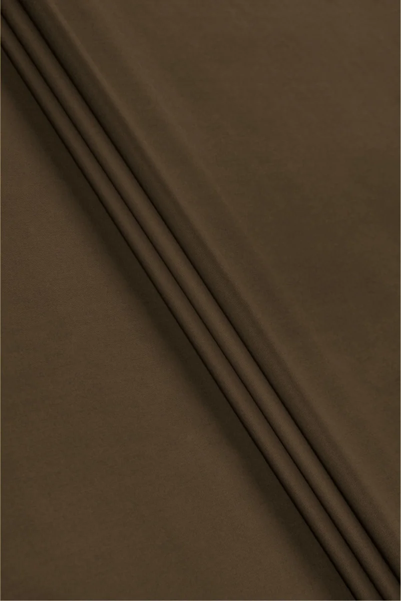 Italian cotton fabric in dark olive color. The fabric is slightly elastic, medium thickness with a tight and delicate twill weave. It is matte and lays quite stiffly, just like denim fabrics. A natural fabric in a very good quality, which will be perfect for sewing trousers, katana, skirt, as well as a dress.