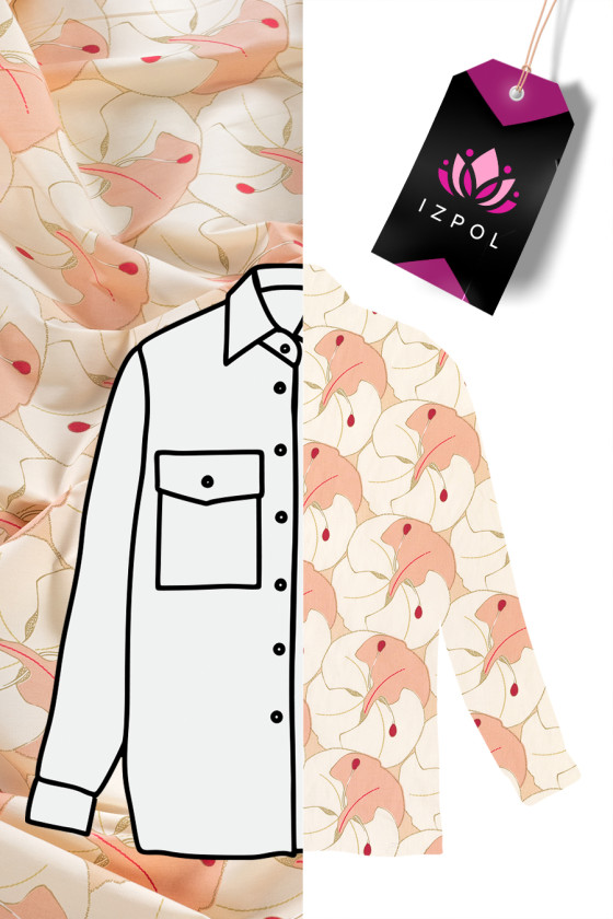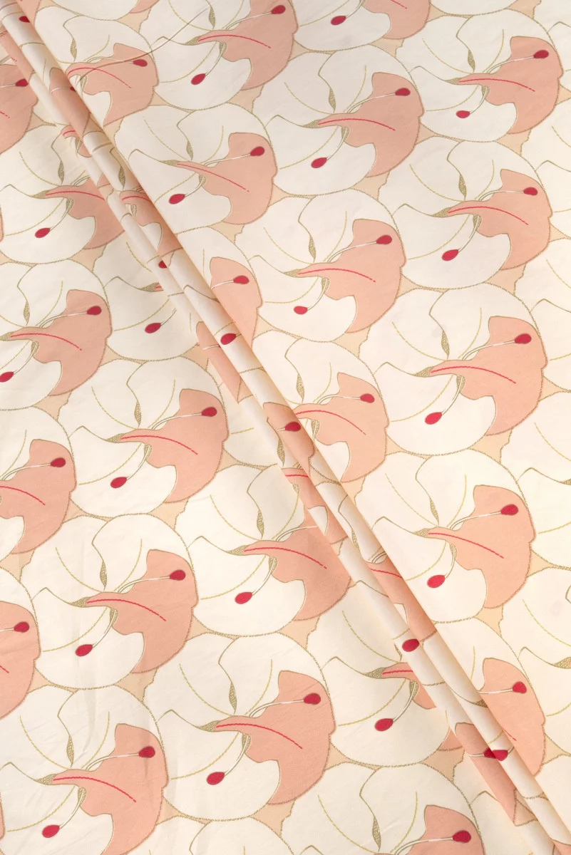 Italian cotton fabric in beige-salmon, large flowers. Cotton is a 100% natural fiber. Cotton fabrics are durable, do not deteriorate quickly, retain their properties for a long time, perfectly pass air, breathe, which gives high comfort of use. Fabric slightly elastic, matte, covering - ideal for sewing a dress, skirt or shirt.