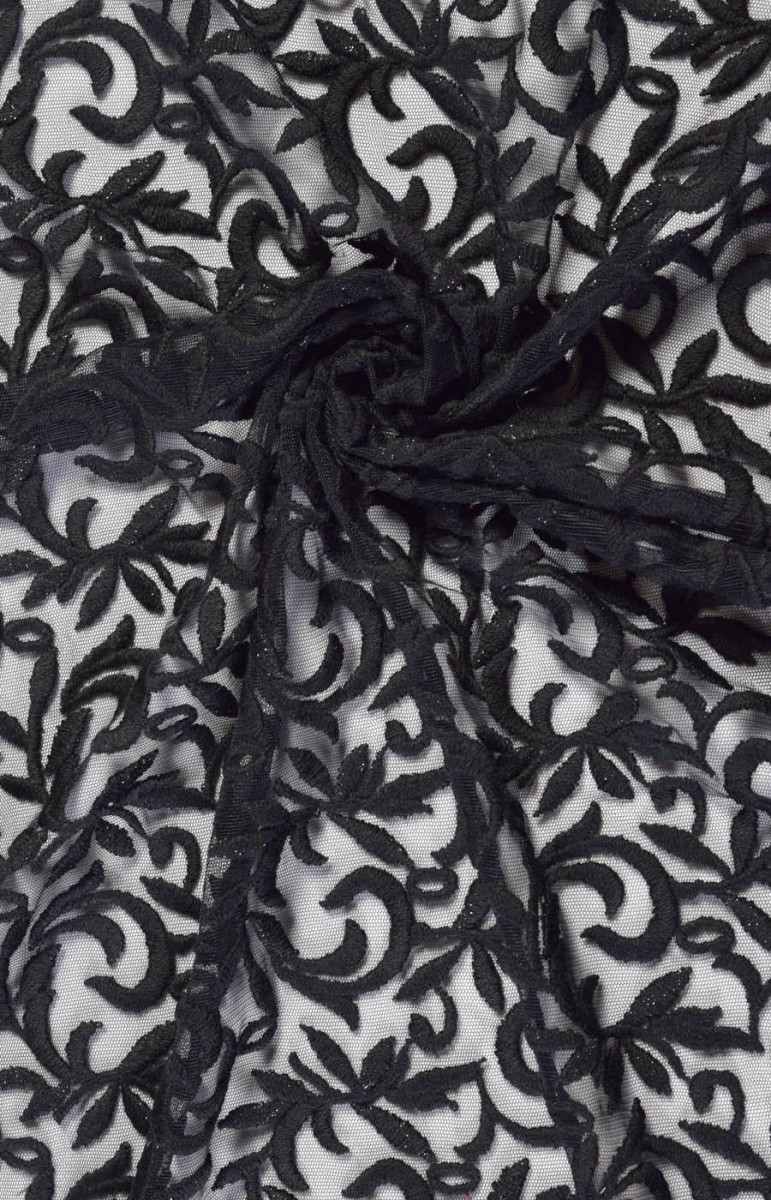 Interesting proposal of tulle with embroidery. Embroidery thick, meaty. Fabric ideal for evening dresses or blouses. The width of the embroidery is about 82 cm.