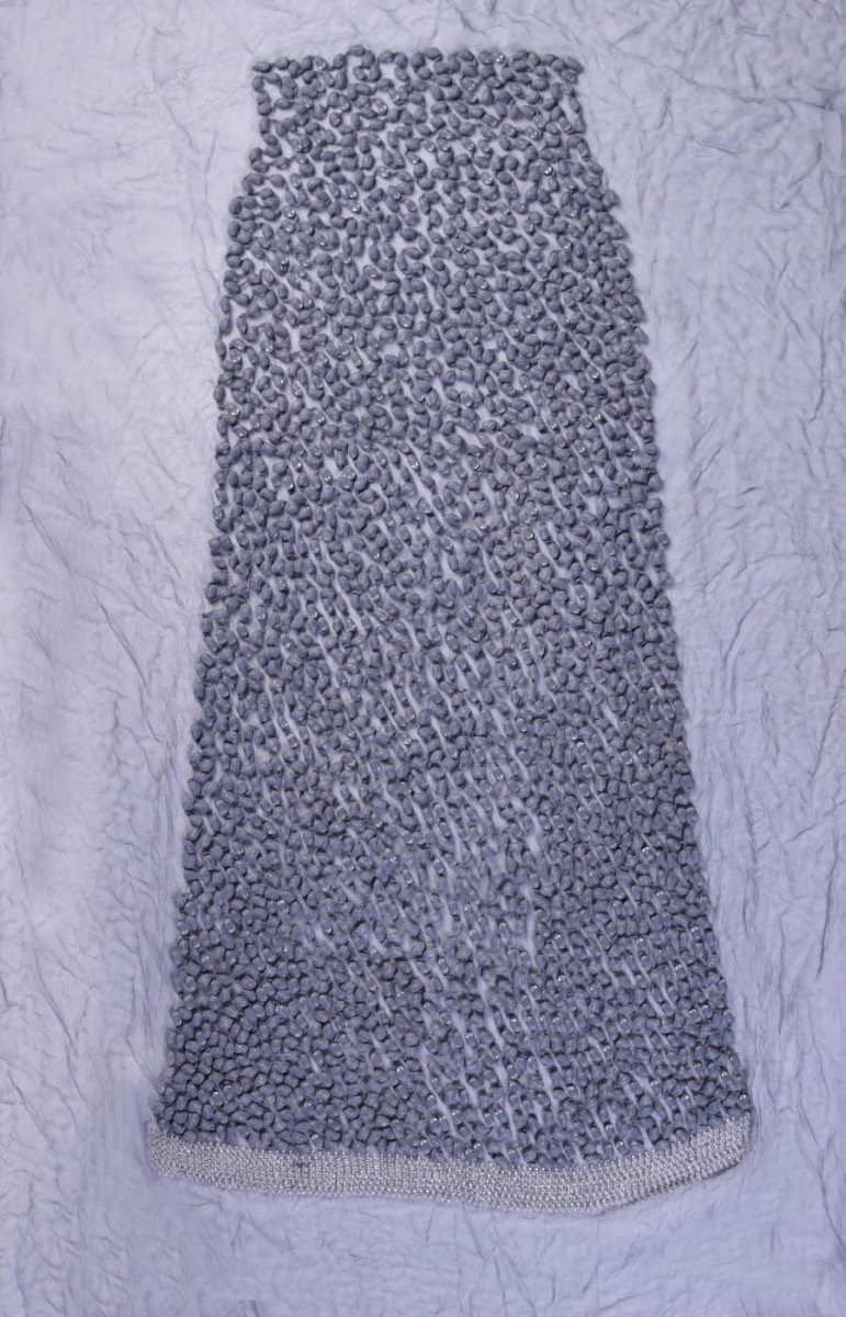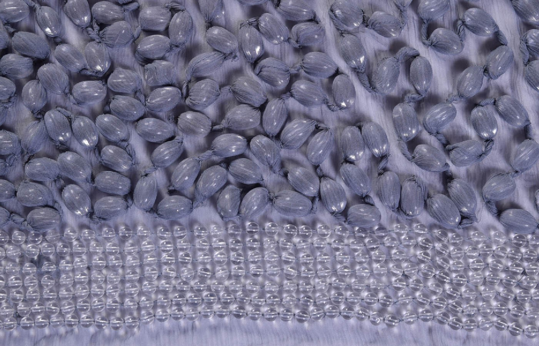 An interesting proposal of the application for original dresses, blouses. Large glass beads were wrapped in silk chiffon. The panel is about 35 cm high, the floor is about 60 cm. The whole weighs ~1.70 kg.