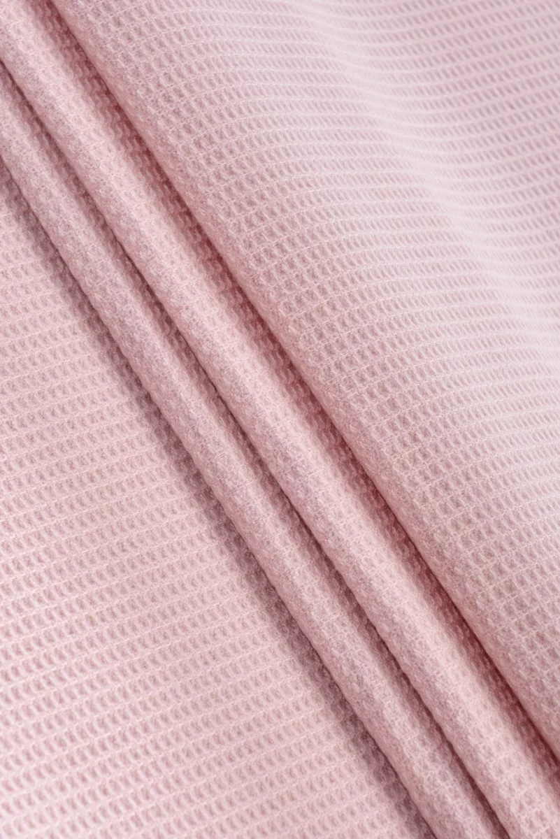 Italian, thicker coat fabric in light pink with a waffle-like texture. Woven from natural wool. Woolen fabrics are ideal for outerwear (coat, jacket, vest) because they warm and at the same time allow the skin to breathe.