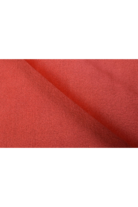 Italian coat fabric woven from natural wool with the addition of cashmere in red. Woolen fabrics are ideal for outerwear (coat, jacket, vest) because they warm and at the same time allow the skin to breathe. The addition of cashmere makes it even better insulating, as cashmere is warmer than sheep's wool.