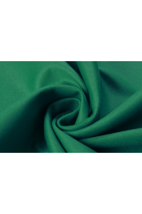 Italian coat fabric woven from virgin wool with the addition of cashmere in emerald green. Woolen fabrics are ideal for outerwear (coat, jacket, vest) because they warm and at the same time allow the skin to breathe. The addition of cashmere makes it have even better insulating properties, as cashmere is warmer than sheep's wool. Dry cleaning recommended.