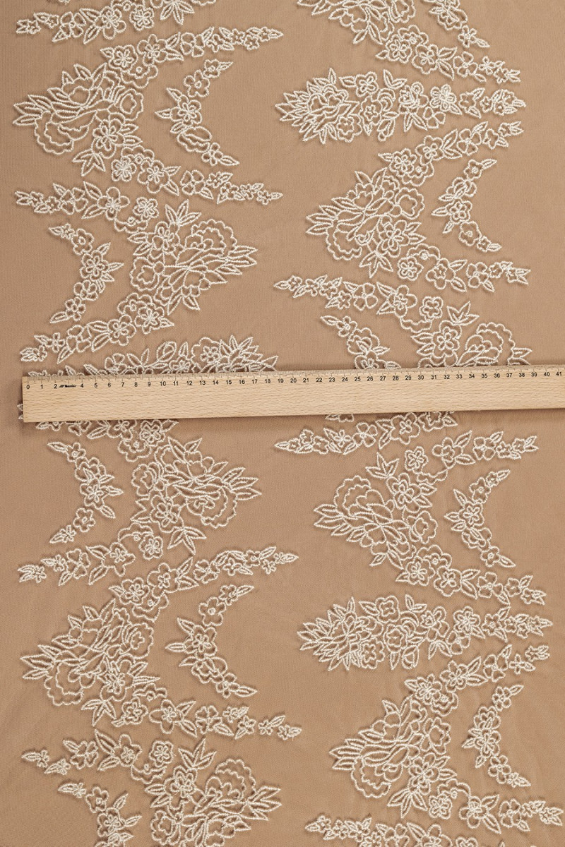 Italian wedding application in the form of a corset in cream color. Beautiful, large motifs with flowers (18 cm) from transparent beads form two stripes.