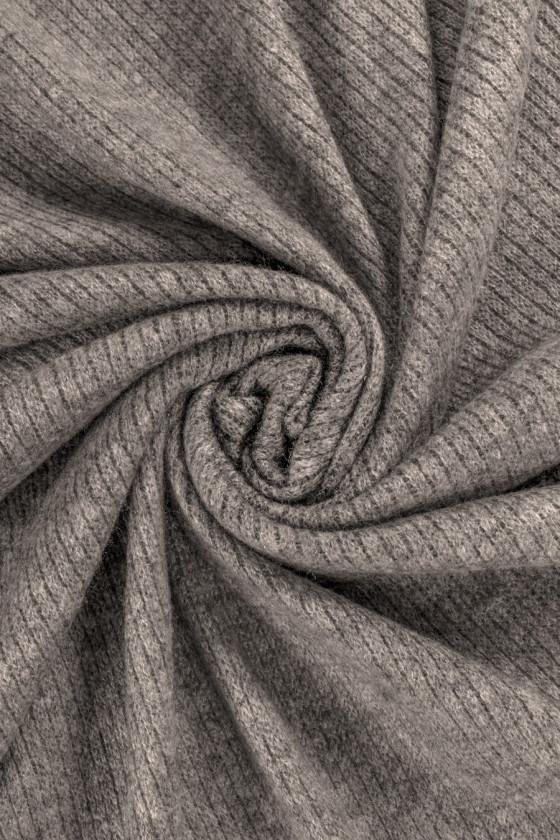 Italian sweater knit with a thicker, loose weave. Fleshy, elastic, perfect for sewing a sweater or turtleneck. Colors: gray-beige melange.