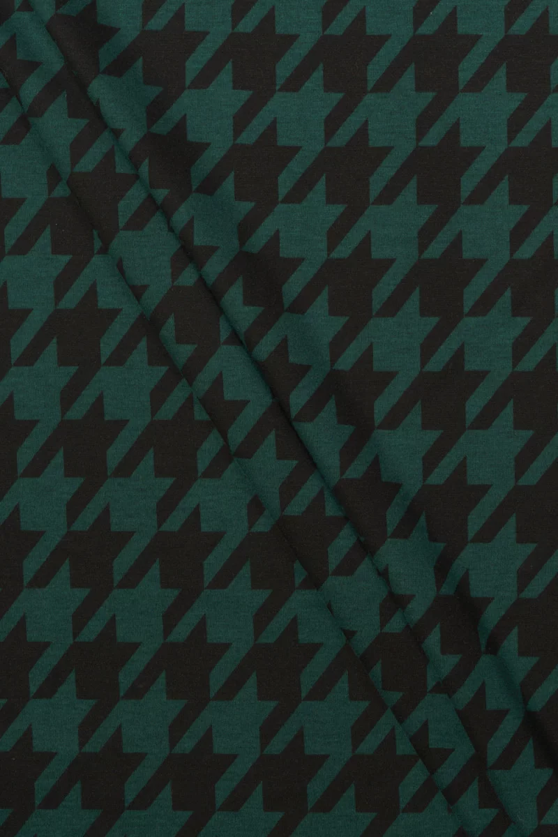 Italian jersey knitwear with a motif of a large chicken foot (7 cm) in bottle green and black. Jersey knitwear is a covering fabric with a compact weave, elastic, softly arranged, which can be sewn without lining. Great for everyday dresses.