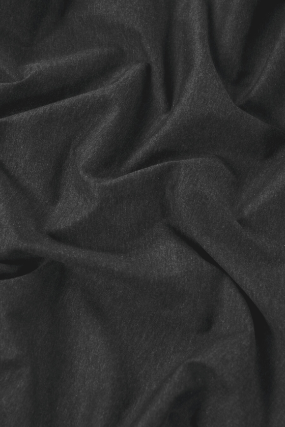 Italian jersey knitted fabric in dark graphite, melange. The knitted fabric is of medium thickness, elastic and matte. We recommend it for sewing comfortable clothes - dresses, skirts, tracksuits. It will also work very well in sewing fitted clothing.