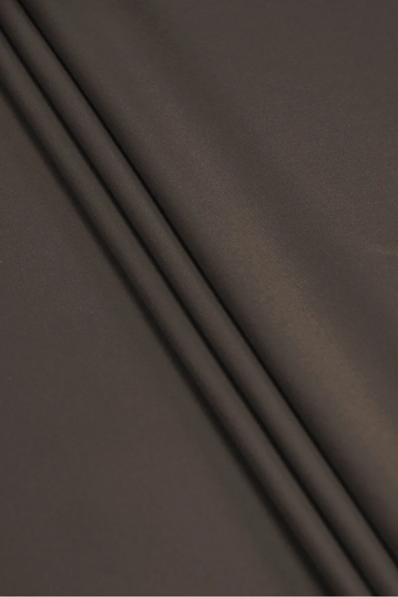 Italian jersey knitted fabric in dark chocolate. The knitted fabric has a smooth and compact weave, is fleshy and elastic. It is perfect for sewing everyday clothes, such as dresses, skirts, tunics or sports jackets. A fantastic proposition in the latest trends for the upcoming autumn-winter season