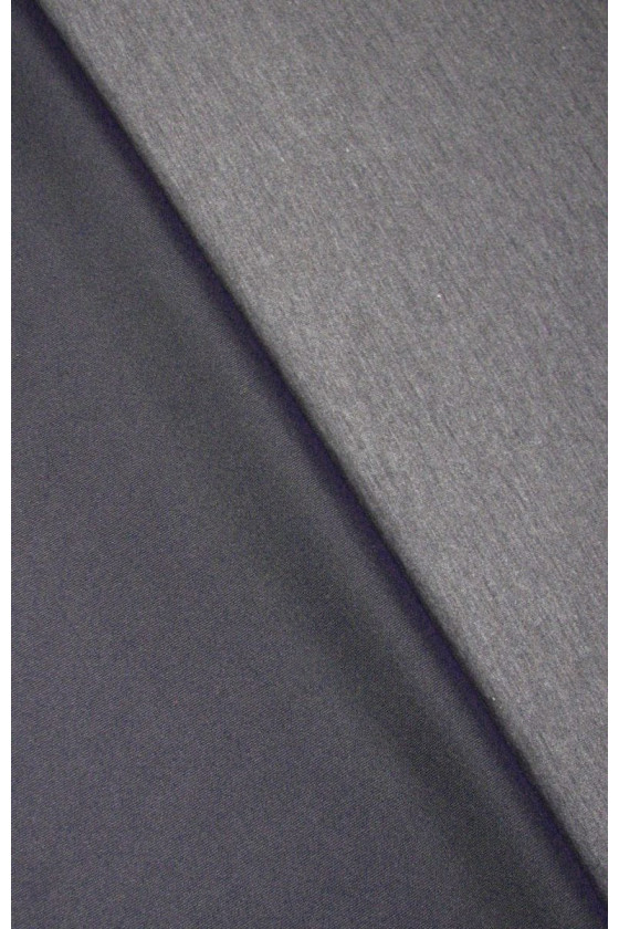 Double-sided viscose knit. Medium thickness fabric, elastic. One side of the color navy blue, the other side of the melange ash. Perfect for dresses and skirts.