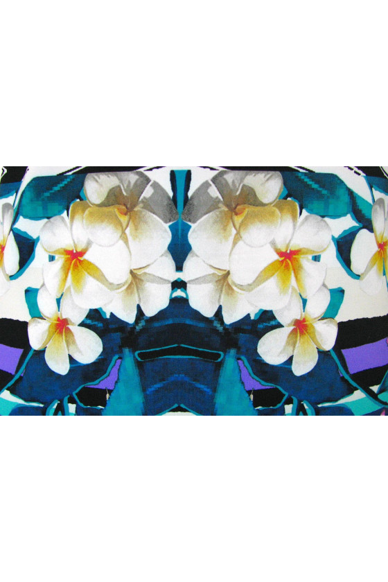 Italian Lycra knit fabric in coupon with dimensions of 135cm*140cm. A very interesting floral pattern on a light navy blue background.