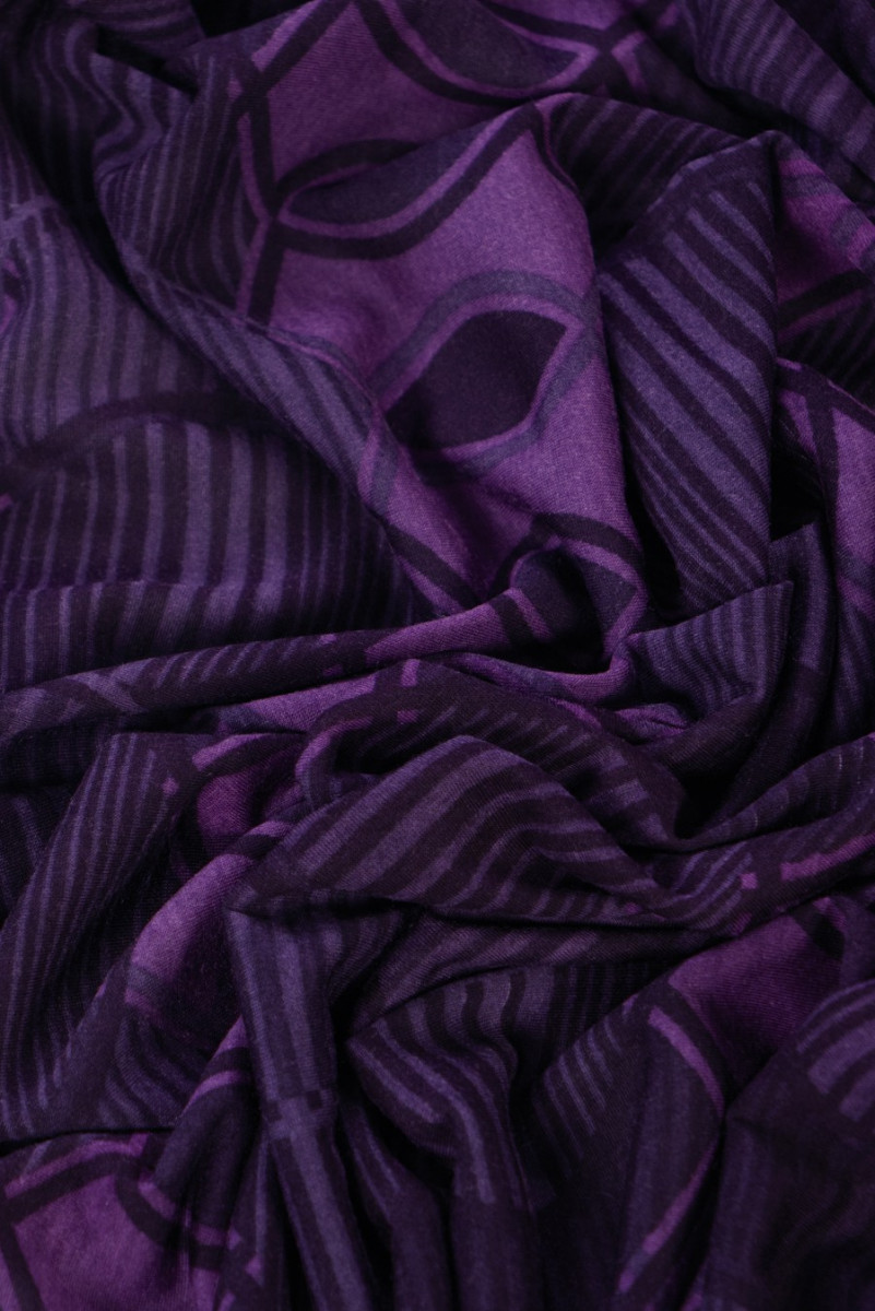 Viscose elastic knitted fabric in shades of purple and black for blouses, t-shirts.