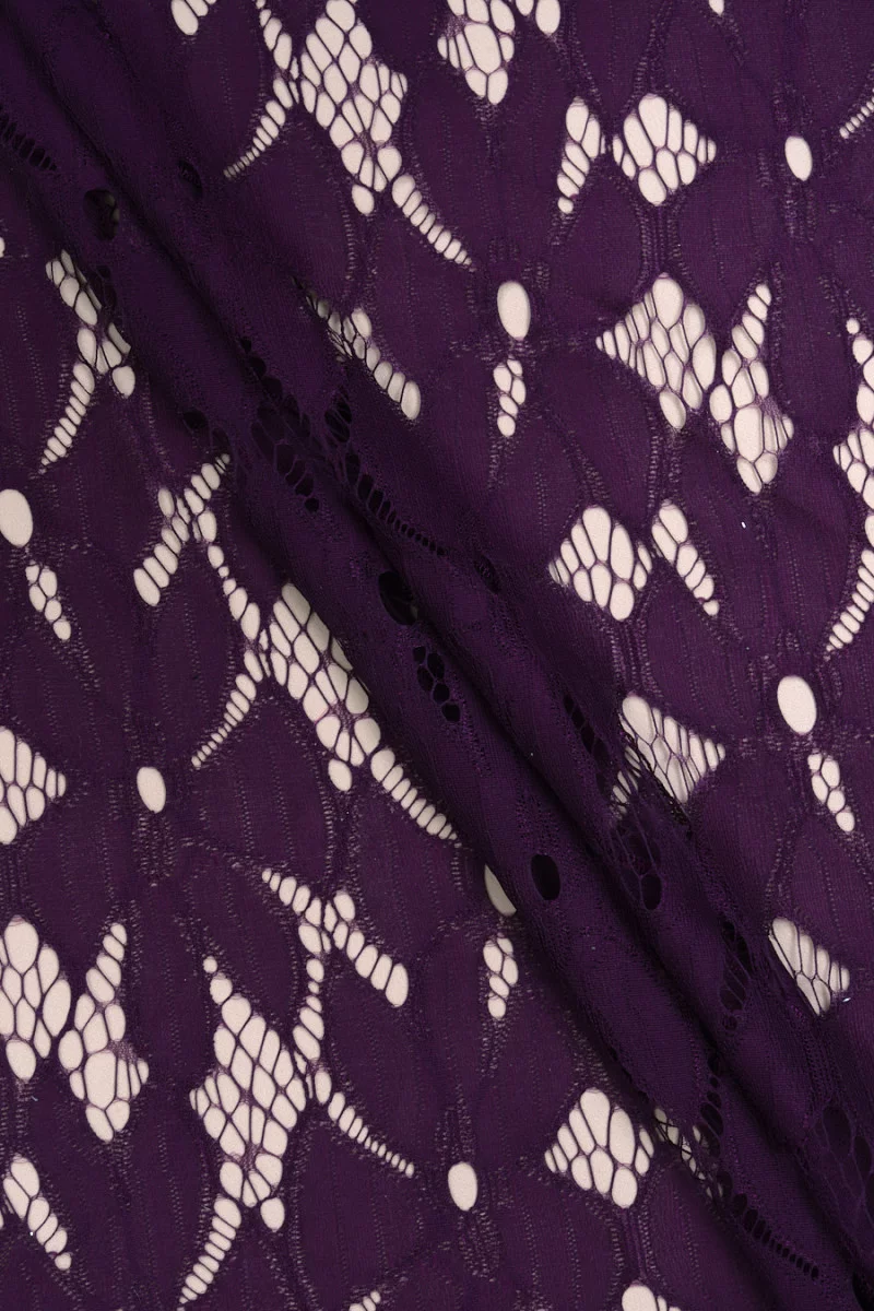 Italian lace fabric in dark purple color. A very interesting motif of large flowers with a diameter of 14 cm, connected by a small cobweb. The crown is very soft to the touch, slightly elastic, it is not finished with a decorative tooth. A beautiful proposition to sew an elegant dress, blouse or as an addition to other fabrics.