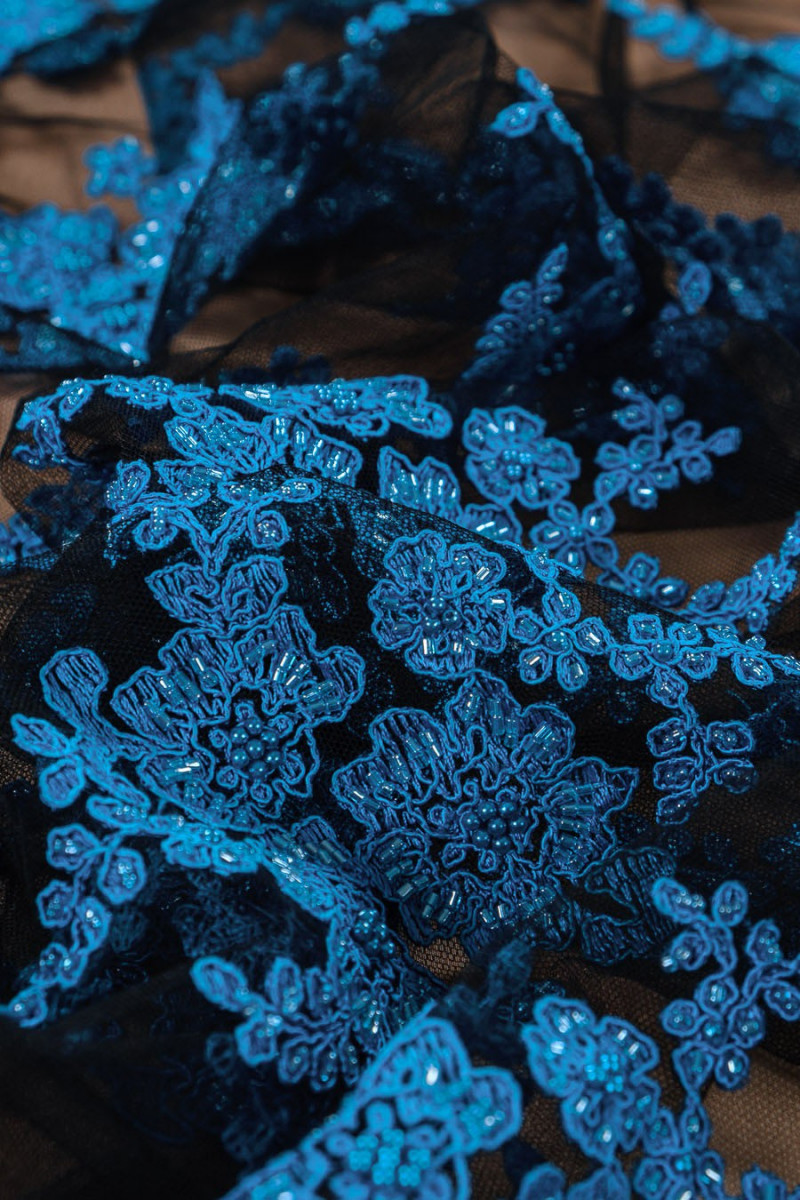 | colour: | black tulle, blue embroidery |