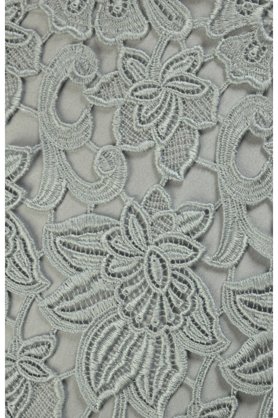 Guiur lace in silvery gray color, woven from viscose and polyamide threads. For a beautiful effect, we recommend to choose a lining for it, e.g. silk satin.
