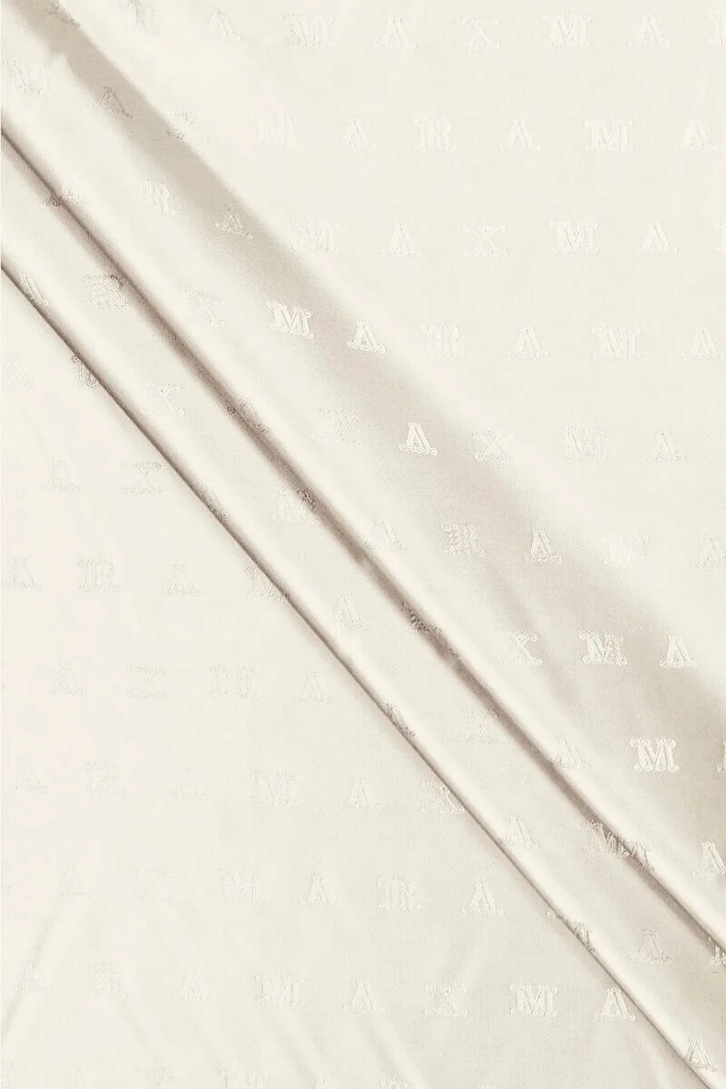 Italian jacquard lining 100% viscose in écru color, signed with the name of the well-known Italian Fashion House. The lining is inelastic with a very noble sheen. Its natural composition makes it ideal as a lining for a jacket or coat. A fantastic proposition for people who like branded fabrics.