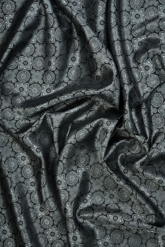 Italian jacquard lining twotone in black and white. The most fashionable pattern of oriental ornaments. The fabric is non-elastic, slightly shiny. Perfect for lining coats, jackets, vests, jackets.