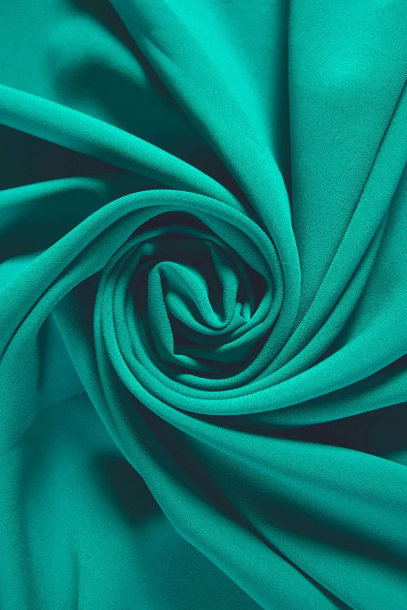 Polyester crepe is a light, thin, delicately covering, semi-matt fabric. You can conjure up airy dresses, delicate blouses, scarves, scarves or use for lining eg lace or chiffon.