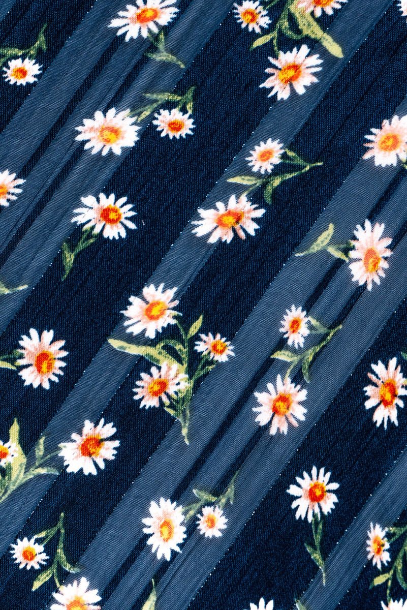Italian polyester chiffon from the devore species in navy blue color with a motif of small flowers (link). Devore fabric is a combination of chiffon with additional, satin straps.