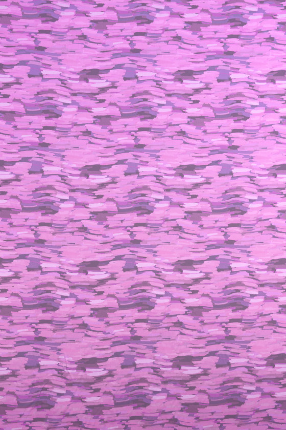 Italian premium polyester satin with a fancy, horizontal pattern reminiscent of brush smudges. The whole is kept in very fashionable colors of pink, brown and various shades of purple. The fabric is slightly elastic, thin but opaque with a satin sheen. A perfect proposition for people who like original patterns in the most fashionable colors.