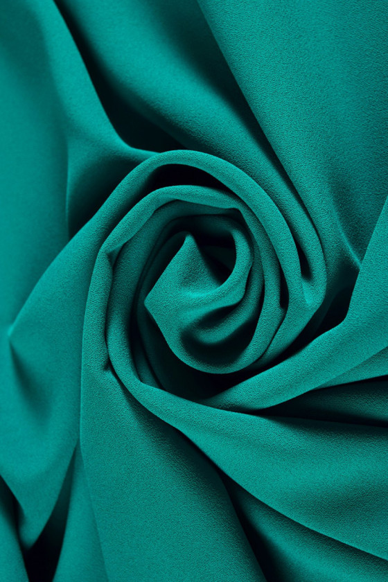 Italian cadi fabric with georgette weave in marine green. The fabric is inflexible, heavy and flowing. Perfect for sewing a dress, skirt or trousers.