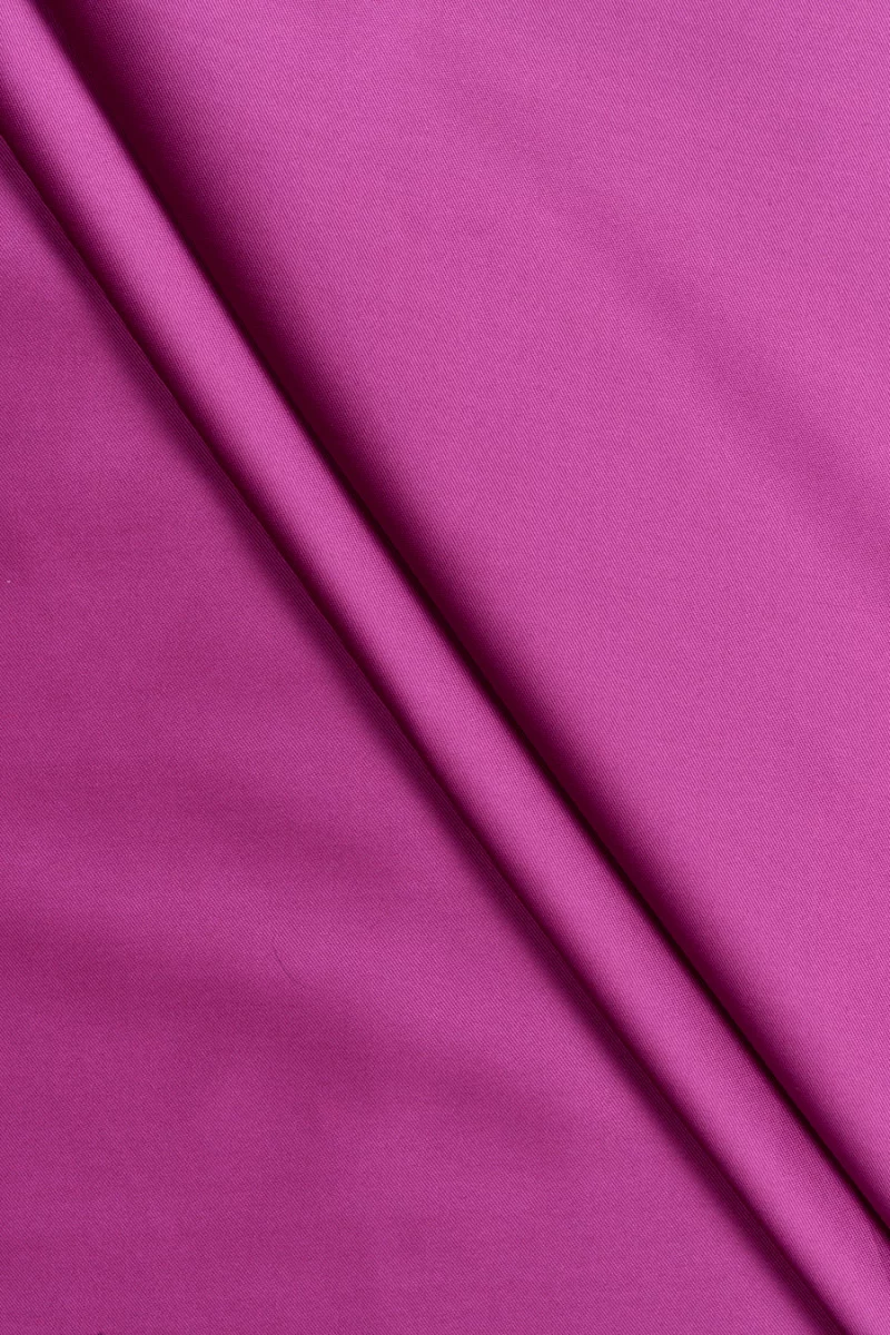 Italian polyester fabric with taffeta silk, double-sided - right side made of fuchsia thread, left side of burgundy thread. Taffeta is a thin but stiff fabric with a characteristic delicate sheen, the fabric has a simple, ribbed weave, the addition of silk gives the fabric elegance. Perfect for formal outfits - dresses, skirts and thin coats.