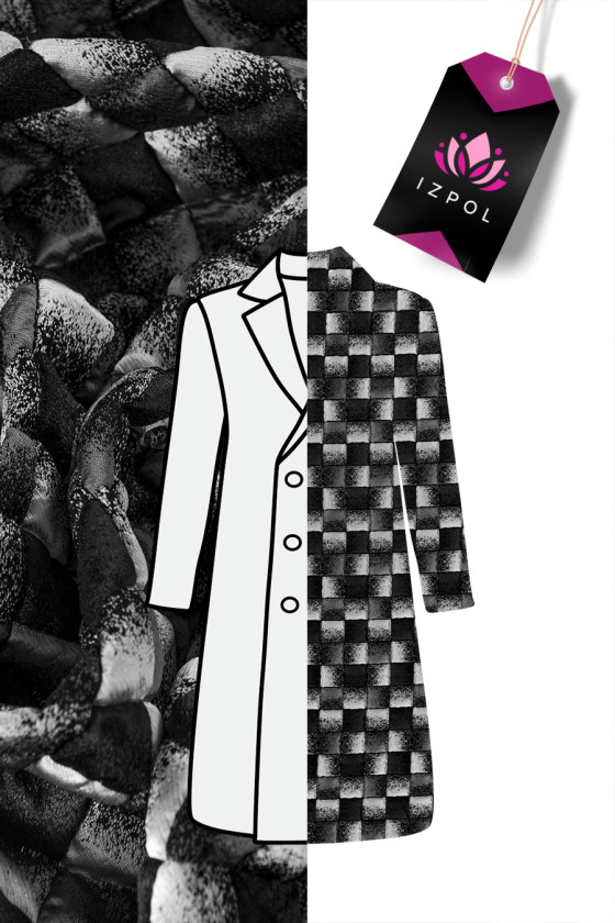 Quilted jacket fabric with 3D effect. The grid is 3cmx 3 cm in size, silver-black in color, gently speckled. The fabric is double-sided, on top with a delicate sheen, it is lined with black organza. A proposal for a spectacular jacket or coat. It can also be a decorative fabric, e.g. for pillows.