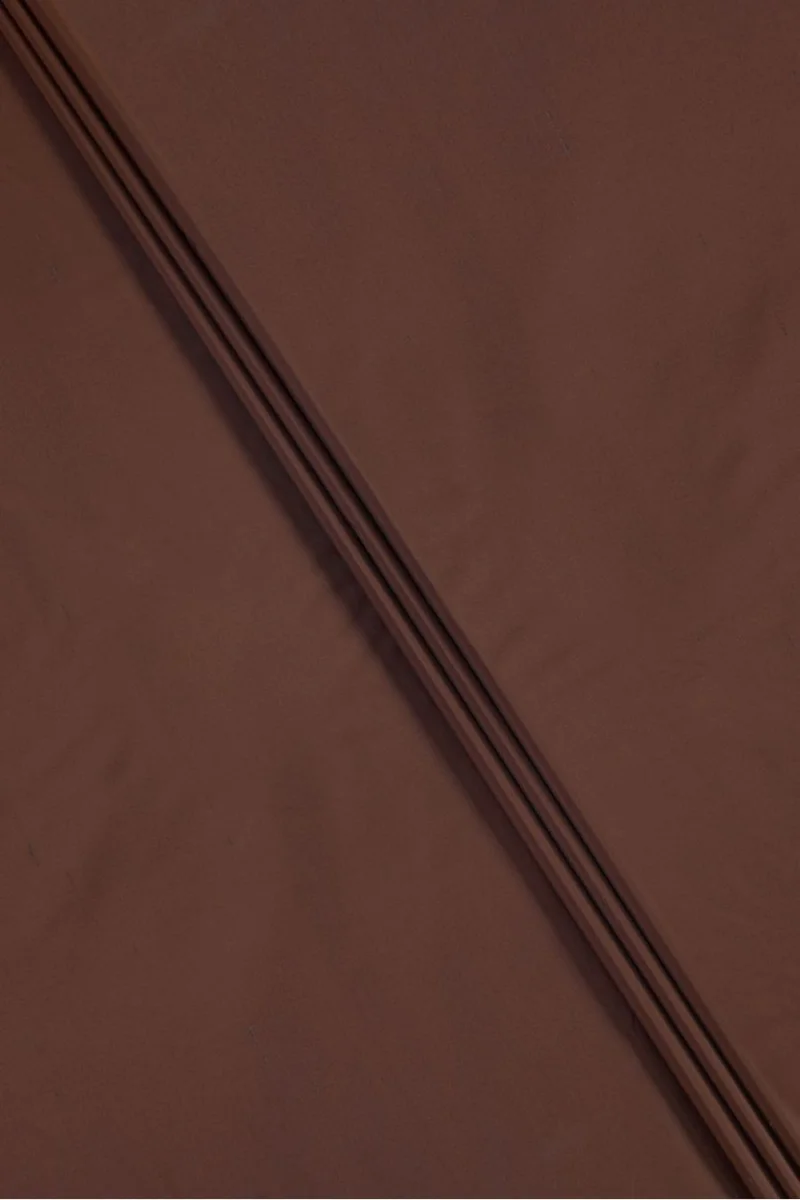 Italian 100% silk shandung fabric, woven from two colors of threads: brown and burgundy, which create a two-tone effect. The fabric is smoother with slight thickenings.