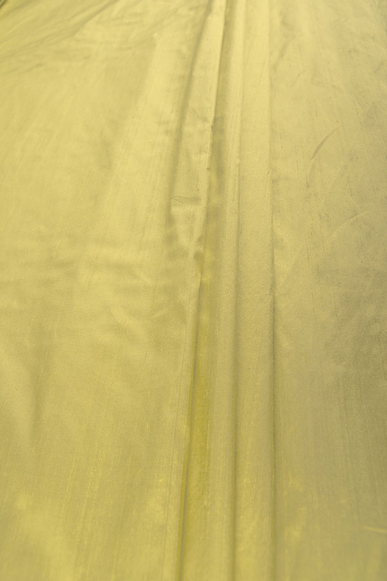 Shantung silk with a smooth structure resembling taffeta in lime green is a loosely woven fabric, dyed naturally. It has a slightly rigid, plastic structure. It is suitable for both clothes and interior decoration - curtains, pillows, etc. Dry cleaning only!