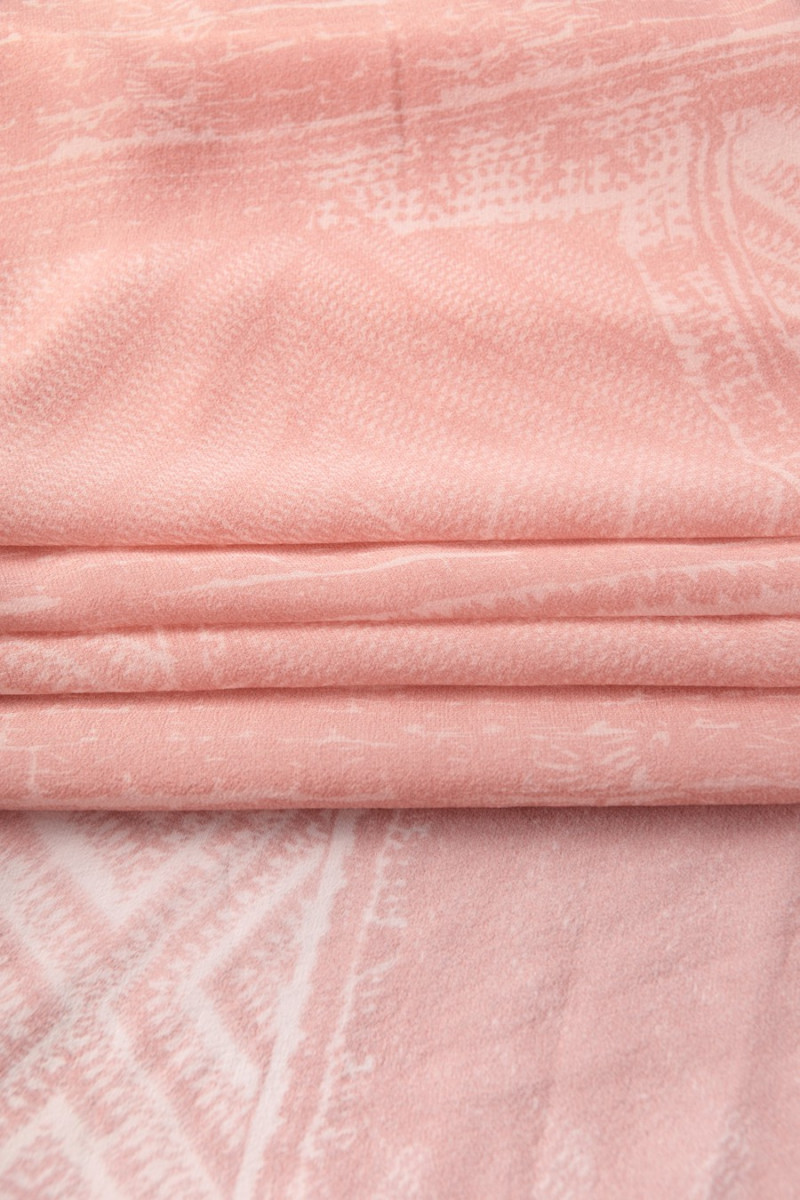 Silk zorżeta in powder pink with ecru with a repeating pattern every 55cm created from rectangles, transparent (requires lining). Delicate fabric ideal for summer heat.
