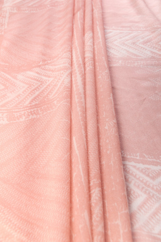 Silk zorżeta in powder pink with ecru with a repeating pattern every 55cm created from rectangles, transparent (requires lining). Delicate fabric ideal for summer heat, 100% natural fabric, very airy.