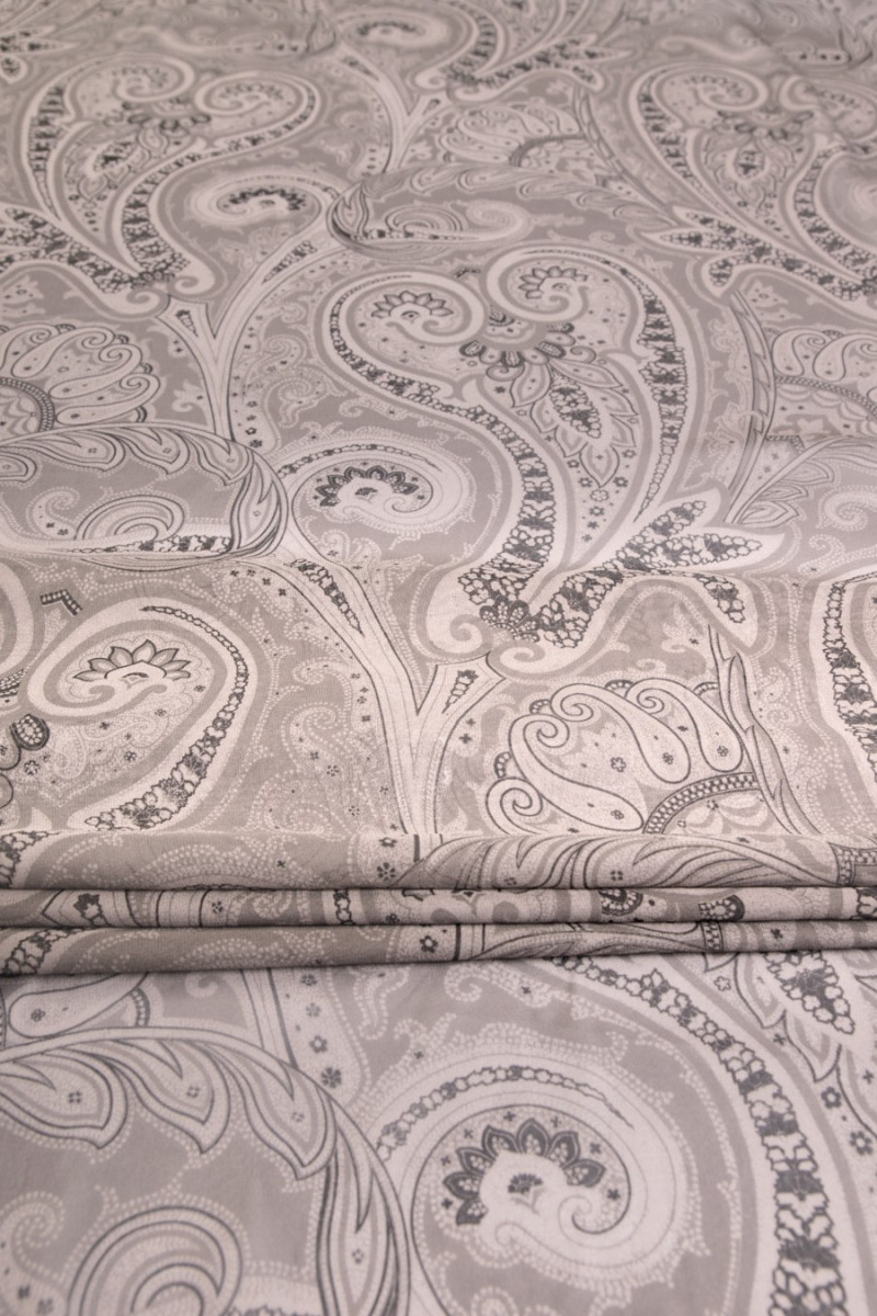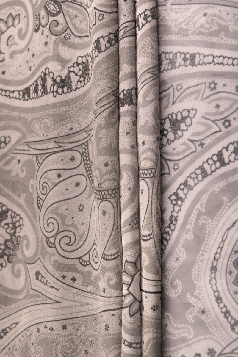 Silk chiffon oriental paisley pattern in shades of gray with black. It is a very delicate, transparent fabric (requires lining). Perfect for airy dresses and blouses. Proposal for summer heat, fabric 100% natural, very airy.