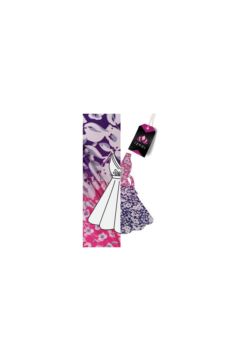 Italian, inflexible habotai silk fabric. Interesting motif of white and gray flowers on a pink background turning purple. The pattern occurs peripherally. Perfect for sewing an airy dress, blouse, skirt, shawl. Composition: 100% natural silk