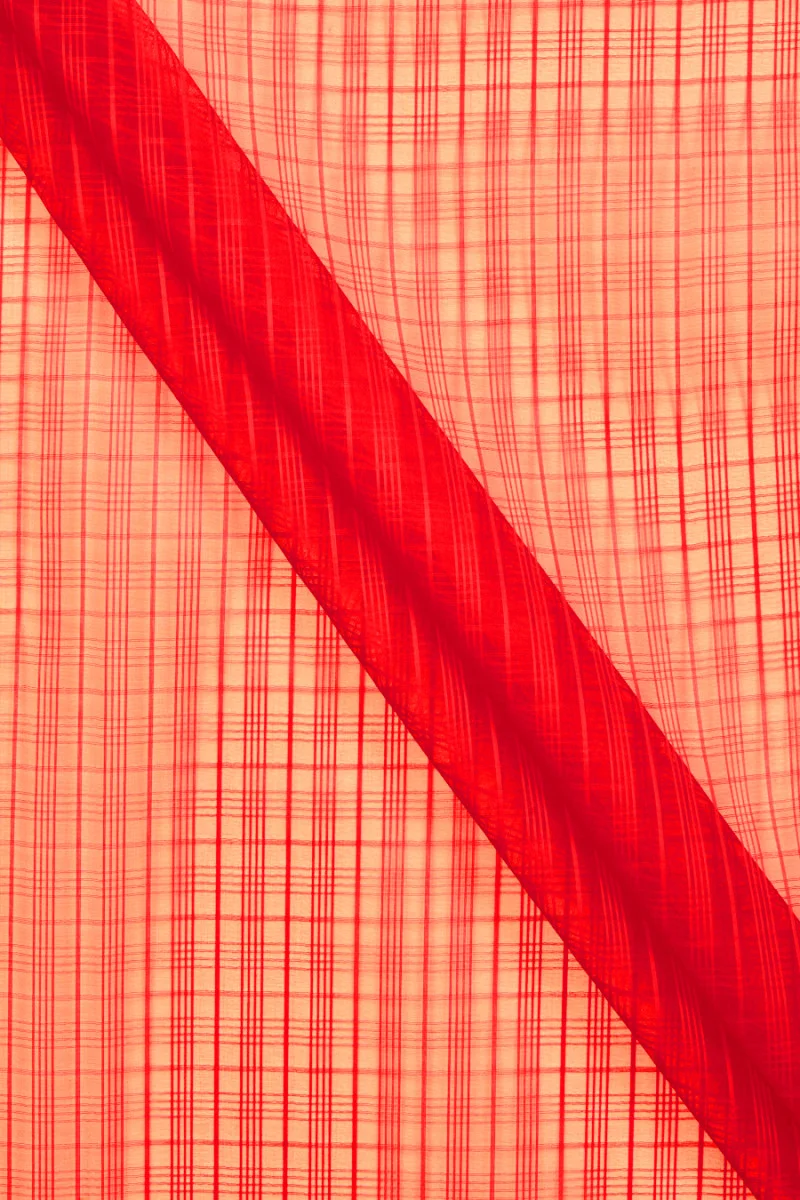 Italian organza 100% silk in red with a motif of regularly placed stripes that form a checkered pattern repeating every 2.5 cm. The fabric is transparent, slightly stiff, and not elastic. Fabric intended for dresses, blouses, shirts, skirts.