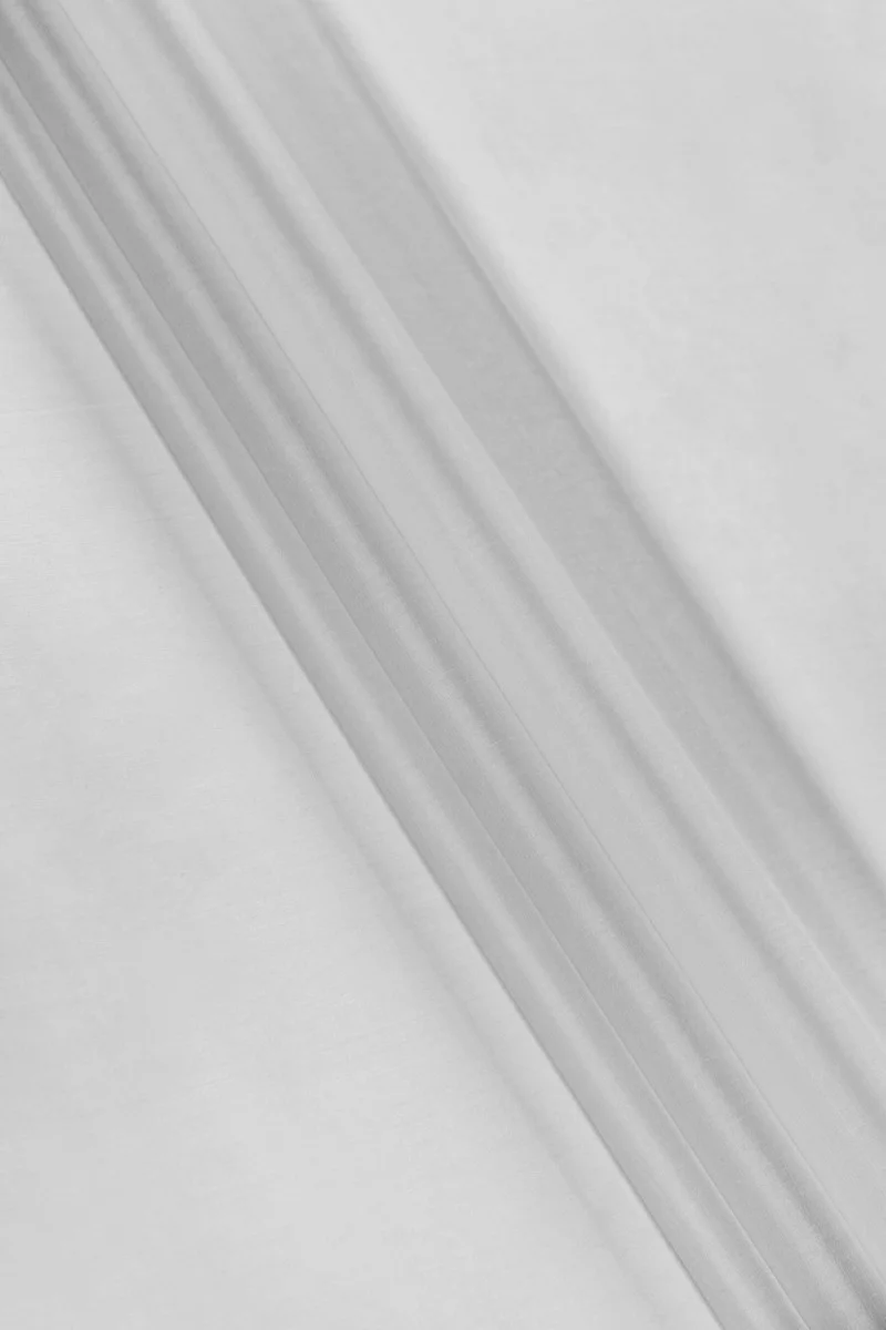 Italian 100% silk organza fabric in light gray. Natural silk organza is a thin, transparent but stiff fabric with a delicate shine characteristic of silk fabrics. Perfect for sewing a dress, blouse, shirt, skirt.